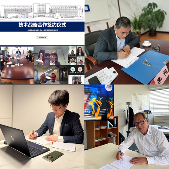 2022年4月29日,翌耀科技旗下企業(yè) - 上海翌楷斯技術(shù)有限公司(下簡稱翌楷斯公司)宣布與一汽模具制造有限公司(下簡稱一汽模具公司)達(dá)成戰(zhàn)略合作,雙方于今日簽署協(xié)議,將共同依托虛擬調(diào)試平臺進(jìn)行數(shù)字工廠的技術(shù)開發(fā),助力國內(nèi)汽車生產(chǎn)企業(yè)提升生產(chǎn)線質(zhì)量和調(diào)試效率,合作打造高效的數(shù)字化生態(tài)系統(tǒng),引領(lǐng)國內(nèi)汽車產(chǎn)業(yè)智能轉(zhuǎn)型升級。受疫情影響,本次簽約儀式在中國上海、中國長春、德國魏加騰以視頻會議的方式進(jìn)行,一汽模具公司副總經(jīng)理李悅,總經(jīng)理助理都韌剛,營銷中心總經(jīng)理董智超,翌楷斯公司總經(jīng)理吳敏,銷售副總監(jiān)程鵬,德國EKS總經(jīng)理約瑟夫穆勒以線上形式出席簽約儀式。